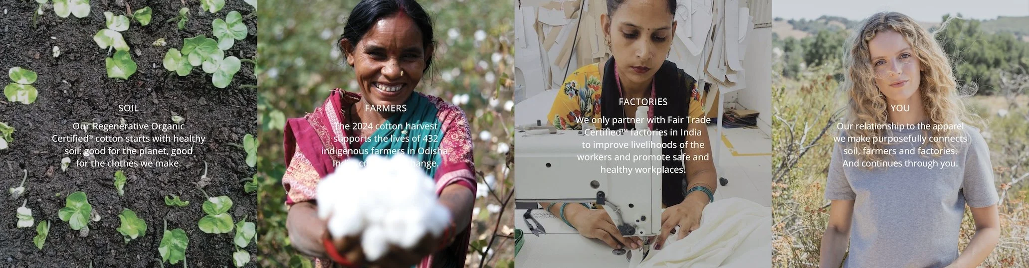 Making sure that farmers and workers are paid fair prices and fair wages which is done through third party certifications like Fair Trade USA, Fairtrade International and GOTS