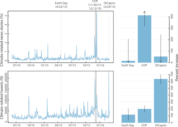 While accepting an Oscar award for Best Actor for his performance in the Revenant in 2016, Leonardo DiCaprio addressed his audience, the ones who were attending the ceremony and 34.5 million people who were viewing it at home by saying, “Climate change is real. It is happening right now, it is the most urgent threat facing our entire species, and we need to work collectively together and stop procrastinating”. His speech may not have received massive media coverage but it did affect the way people tweeted, Google searched and engaged online. A research article showed that the tweets that contained the phrases “climate change” or ‘global warming”, “were at the highest recorded value […] with more than 250,000 tweets on that day” and “third-highest point ever recorded for climate change or global warming on Google trends” after his speech. This goes to show that when celebrities talk about climate crisis and social issues it has an impact on how we engage online. Leo has not only used his platform as an actor to bring awareness about climate change. He has also been working as an environmentalist to raise issues about the causes, contributions, and solutions of climate change.