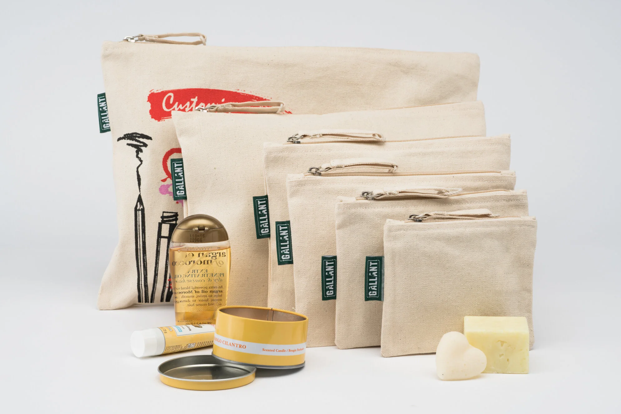 Use zipper pouches as an extra purse, for snacks, or for items that don’t have a home. Zipper pouches are the perfect organizing tool for your company and customers. Made at a Fair Trade Certified factory, our pouches are eco-friendly and fairly produced. Feel confident in your purchase at Gallant, knowing it’s helping to lessen your company’s environmental footprint.
