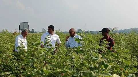 DR PATIL SUPERVISING THE BREEDING WORK IN HIS NON-GMO COTTON FIELD TRIAL PLOTS