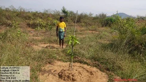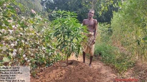 A FARMER PLANTING SAPLINGS UNDER AGROFORESTRY PROGRAM