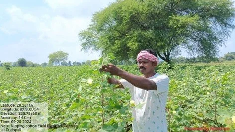 FARMER PRACTICING NIPPING IN THE COTTON CROP